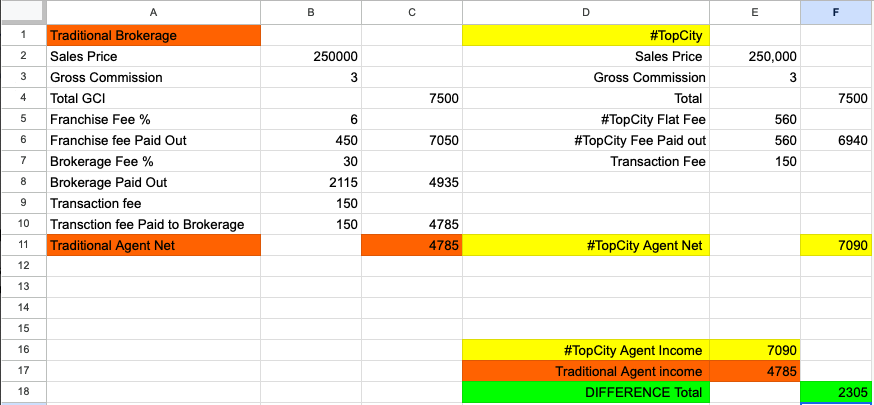 With rising fees and brokerage splits eating away at your hard-earned income, is your brokerage helping you or holding you back? Use the TopCity Commission Calculator to compare your current commissions to our agent-friendly model. It’s time to take control of your business and keep more of what you work so hard for. Don’t let an outdated brokerage cut into your success!